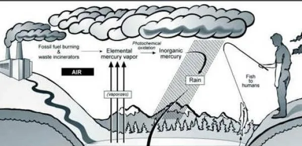 Il mercurio trattato può portare a un aumento progressivo della quantità del metallo nell'atmosfera, che entra nei cicli di distribuzione atmosfera-suolo-acqua, dove può rimanere in circolazione per anni. L'uomo ha triplicato la quantità di mercurio nell'ambiente, con un aumento di quasi l'1,5% l'anno. Tale composto, attraverso il suolo e l'acqua contaminata, entra nella catena alimentare per mezzo dei microrganismi inferiori, con meccanismi poco caratterizzati e diversi tra gli ecosistemi, quindi, inquinando piante e animali.