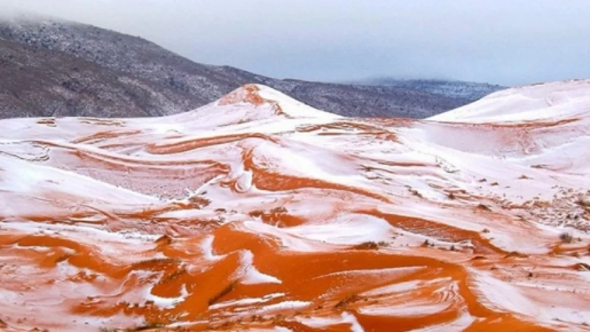 Il deserto del Sahara è tra i più grandi al mondo, per la precisione è il deserto più arido e caldo con una superficie di 9 milioni di metri quadrati occupa diversi stati e regioni: il Sahara Occidentale, il Marocco, l'Algeria, la Tunisia, la Libia, l'Egitto, la Mauritania, il Mali, la Nigeria, il Ciad e il Sudan. L'ultimo fenomeno nevoso si è registrato 37 anni fa, la mattina di martedì 20 dicembre in una piccola regione dell'Algeria il fotografo amatoriale Karim Bouchetata ha immortalato dune e colline ricoperte di neve, sciolta subito ai primi raggi di sole.