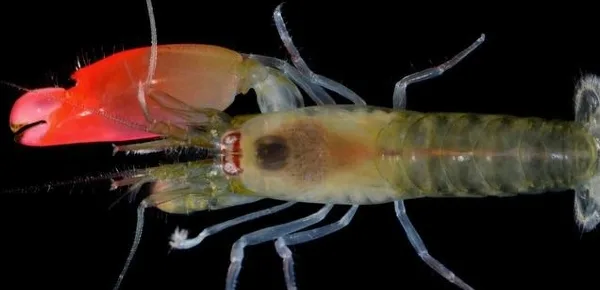 La straordinaria specie di crostaceo rosa è stata scoperta da un gruppo di studiosi dell'Università Federale Brasiliana di Goias, sotto la direzione dello scienziato Arthur Anker. Sembrerebbe, infatti, che il gambero apparterrebbe alla famiglia dei Synalpheus Antillensis, chiamati anche "gamberi pistola", che vivono tranquillamente nell'Oceano Atlantico occidentale, ma a causa di differenze sostanziali nel colore e nella struttura genetica, rappresenterebbe una nuova specie. La denominazione di gamberi "pistola" nasce dal fatto che essi possiedono una chela molto più grande dell'altra che, spruzzando acqua e formando bolle ad altissima pressione, una volta esplose, emettono un suono fortissimo che stordisce e, spesso, uccide, granchi e altri piccoli pesci che gli si avvicinano.
