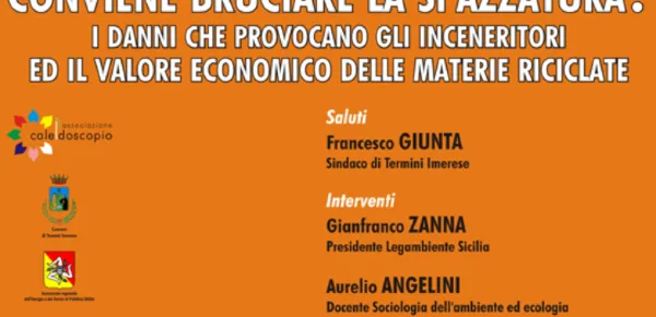 Venerdì, 22 dicembre 2017, presso l'ex Chiesa Maria Santissima della Misericordia, a Termini Imerese (Pa), si terrà l'incontro intitolato "Conviene bruciare la spazzatura?" , che vedrà l'unione delle forze politiche locali le quali, in un'ottica prospettica futura, discuteranno di un tema delicato quanto serio: lo smaltimento dei rifiuti al fine della tutela della salute della collettività, dell’ambiente e delle risorse paesaggistiche della Regione.