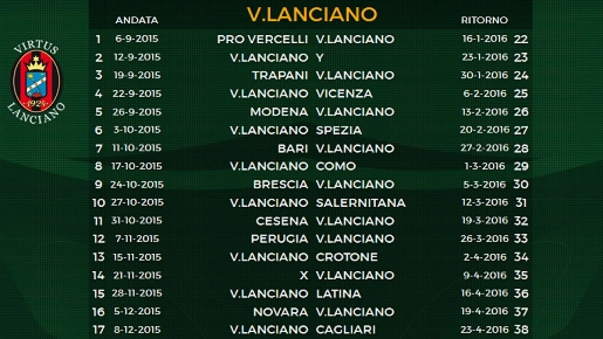 La Virtus Lanciano tenterà di migliorare il piazzamento della scorsa stagione, quattordicesimo posto con 50 punti. I precedenti piazzamenti: 2013-14, decimo; 2012-13, diciottesimo. Nell’annata appena trascorsa, i rossoneri hanno fatto registrare 10 vittorie, 20 pareggi e 12 sconfitte. L’ultimo successo in casa risale al 29 marzo scorso, contro la Virtus Entella per 1-0. L’ultimo acuto fuori è datato 13 dicembre 2014, 0-1 a Terni.