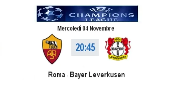Alle 20.45 di questa sera, mercoledì 4 novembre 2015, sul terreno di gioco dell'Olimpico si gioca Roma - Bayer Leverkusen che seguiremo in diretta live su questa pagina con la cronaca minuto per minuto, aggiornamenti in tempo reale di gol, video highlights e risultato, mentre nel pre-partita annoteremo le ultime indicazioni sulle probabili formazioni che poco prima del fischio d'inizio del russo Sergei Karasev diventeranno ufficiali per effetto delle scelte dei due allenatori.