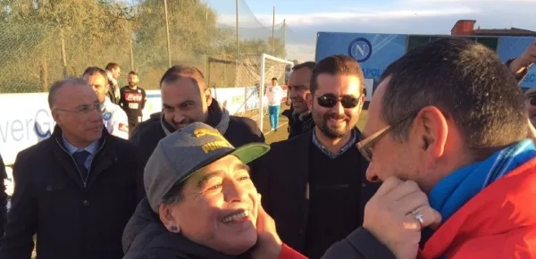 "Le parole di una leggenda possono trasmetterci una grande carica" ha dichiarato Mister Sarri. Maradona incontrerà la squadra: un abbraccio al Mister ed ai suoi ragazzi prima di salire in Tribuna a fare il tifo assieme alle centinaia di tifosi napoletani giunti in Spagna (più di 5000).