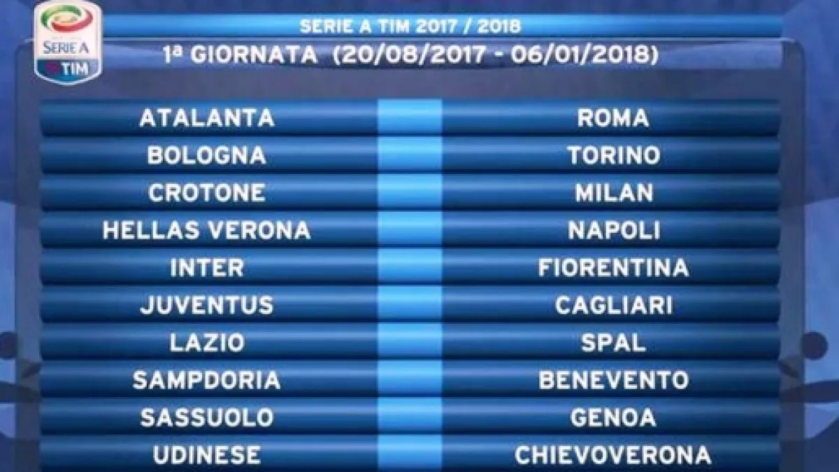 La prima giornata del campionato di Serie A si apre con 22 gol segnati (21 e un autogol) e con le cinque squadre favorite (Juventus, Napoli, Roma, Milan ed Inter) che fanno bottino pieno come da previsione. Da segnalare anche l'impiego della VAR in svariati incontri in programma. Da un punto di vista Oroscopo è stata una giornata di campionato segnata dal predominio del segno dell'Acquario, per quanto riguarda i gol realizzati a stretto duello con il segno dello Scorpione.