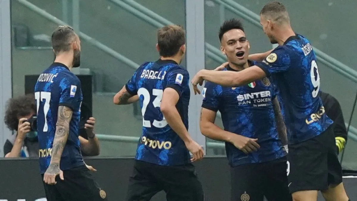 Il tecnico dell'Inter, Simone Inzaghi, cambia poco rispetto a quanto visto contro la Fiorentina nel turno infrasettimanale. In attacco ci sono ancora Lautaro Martinez e Dzeko, mentre sulla fascia destra c'è Matteo Darmian e a sinistra Perisic. Nel primo tempo l'Inter parte forte e sfiora il gol con Dzeko, che conclude di poco a lato dopo soli 2'. Al 10' arriva la rete del vantaggio dei nerazzurri con Lautaro Martinez, che sul filo del fuorigioco scatta e insacca su cross di Barella.