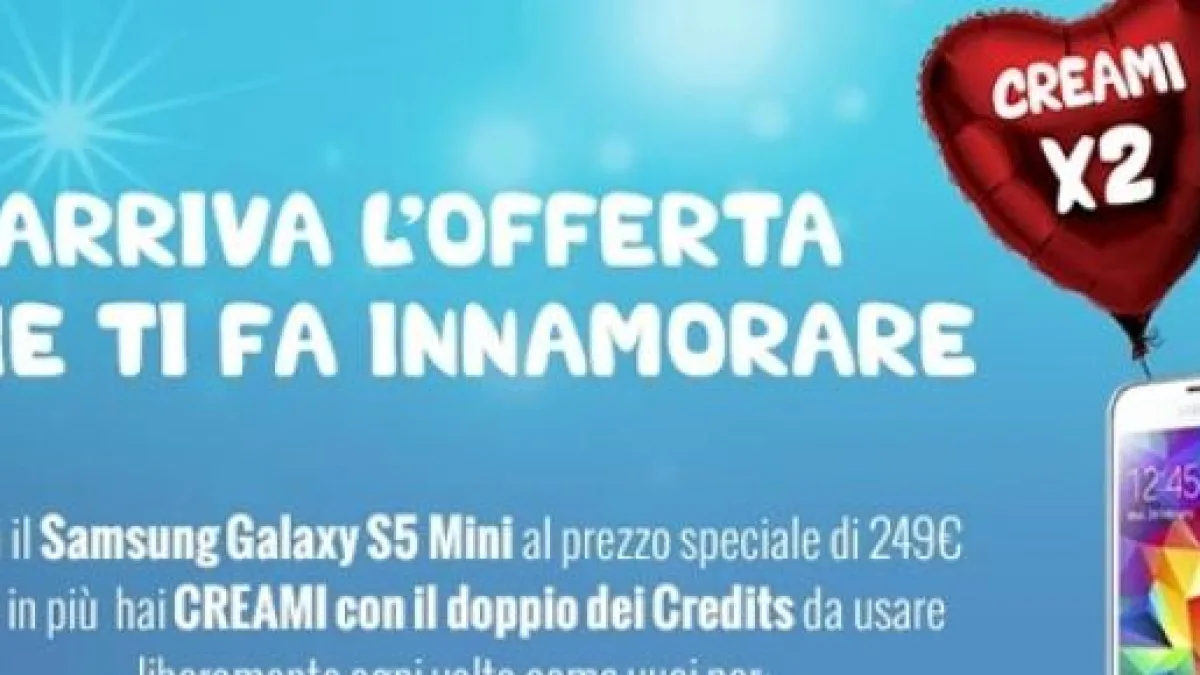 In vista della festa degli innamorati sarà possibile ottenere il Samsung Galaxy S5 Mini a 249 euro anziché 399 euro. Questo, però, soltanto sottoscrivendo con l'operatore di telefonia mobile un piano Creami. In particolare, con Creami 1000, il cui costo mensile è di 10 euro, si ha modo di avere un forte sconto sull'acquisto del dispositivo sudcoreano, nonché doppi crediti, che da 1000 passano a 2000. Tali credits potranno poi essere utilizzati dall'utenti per effettuare chiamate o inviare messaggi, nonché per navigare su internet. Per chi non sapesse come funzionano i crediti, ricordiamo che uno di questi corrisponde ad un minuto di telefonata oppure ad un sms oppure ad 1 MB di traffico dati.