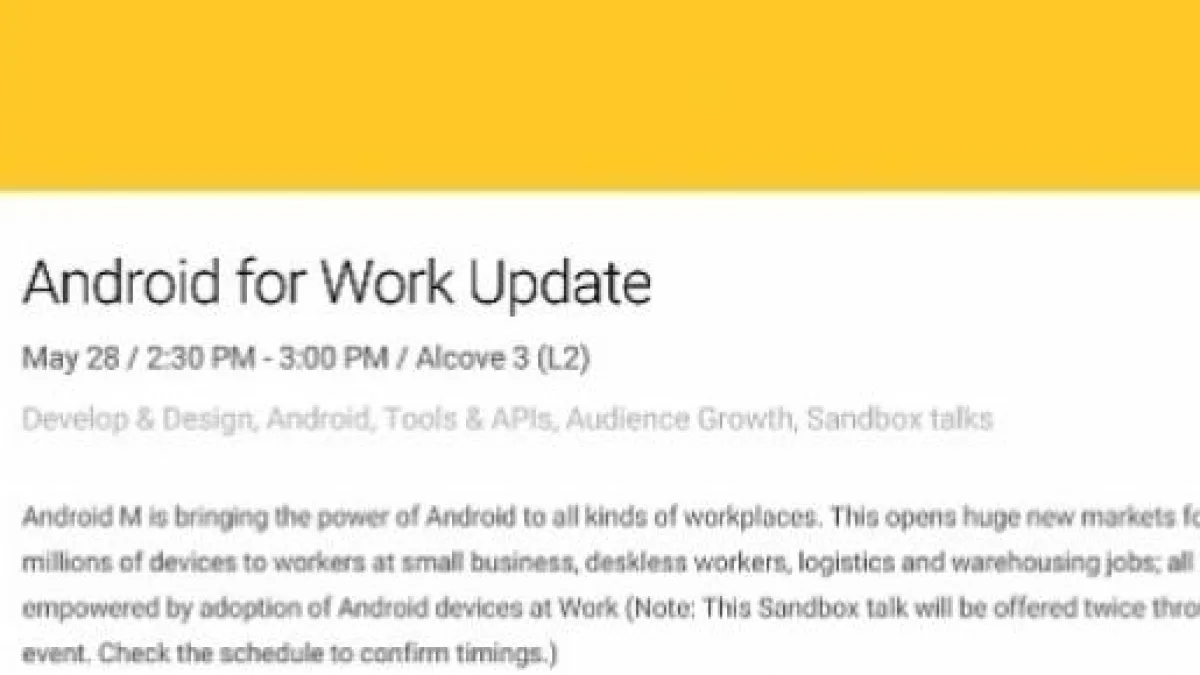 Tutti avranno il potere di adottare Android sul lavoro ", c'era scritto nella descrizione prima di essere tolta dal programma degli eventi al Google I / O.