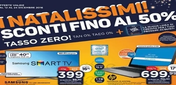 Queste sono invece le proposte del volantino di Unieuro, valide fino al 24 dicembre. L'iPhone 6S viene venduto a 639 euro. A differenza di quello di Mediaworld, è il modello da 32 gb. In casa Samsung, troviamo l'S6 Edge a 399,00 €. Valore dunque dimezzato rispetto allo scorso anno. Per quanto riguarda la linea J, troviamo il J7 e J5 in vendita rispettivamente a 279,90 e 199,90 euro. Huawei ancora in prima linea con il P8 Lite, la rivelazione dello scorso anno, acquistabile a 179,90 €, 50 euro in meno rispetto al prezzo del P9 Lite venduto su mediaworld.it. In questo articolo potete confrontare le offerte dei volantini Mediaworld e Unieuro di inizio dicembre.