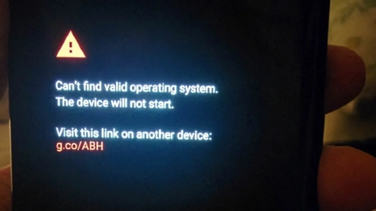 Quello che resta è uno smartphone in mano, schermo nero e la scritta: "Can't find valid operating system. The device will not start. Visit this link on another device: g.co/ABH". La traduzione credo sia superflua.