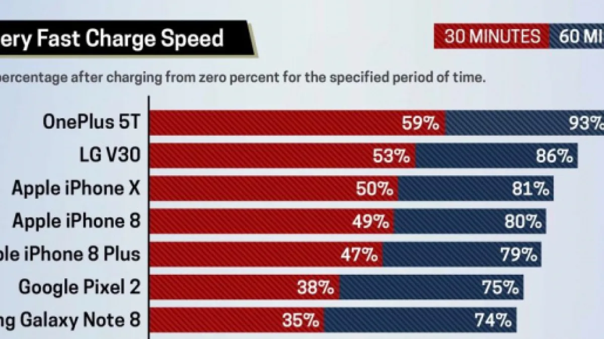 Il test è stato condotto utilizzando gli accessori di ricarica rapida disponibili per diversi smartphone di fascia alta tra cui OnePlus 5T, LG V30, Google Pixel 2 e Galaxy Note 8.
