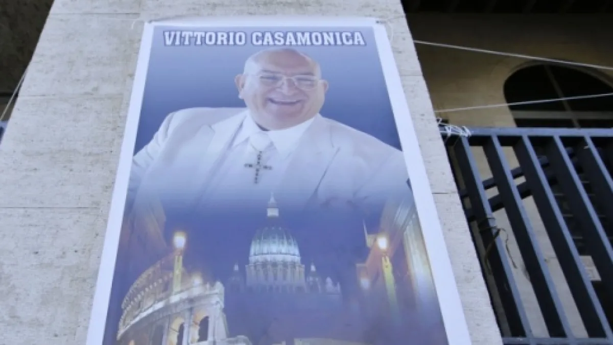 Che poi tanto occulta non è visto il mega cartellone esposto sulla facciata della parrocchia: Vittorio, vestito con l’abito bianco, una croce sul petto, il Colosseo sotto e la dicitura “Re di Roma”. Come dire, ‘abbiamo conquistato l’Impero, per volere di Dio!’.