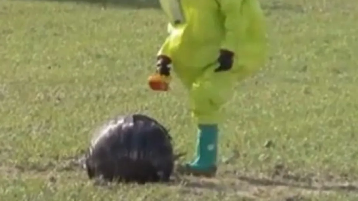 Inizialmente le autorità, che non comprendevano di cosa realmente si potesse trattare, hanno cercato di utilizzare la massima cautela possibile nell'avvicinarsi alla sfera. Come si vede dall'immagine infatti, i primi contatti con la sfera sono avvenuti per mezzo di tute protettive, in stile film di fantascienza, che di solito vengono usate nei casi di rischio di contaminazioni nucleari, batteriologiche o chimiche.
