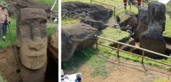 Scavi archeologici, infatti, hanno permesso di riportare alla luce veri e propri torsi umani con varie scritture simili a geroglifici scolpite sulla schiena di questi Moai.