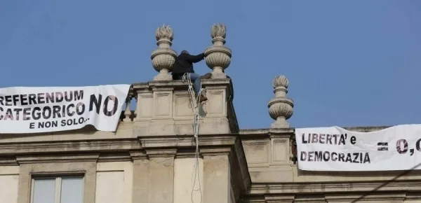Sono le ore 8.00 di mattina dell'8 ottobre del 2016 quando un uomo decide di arrampicarsi sul tetto del Teatro alla Scala di Milano per protesta. Si tratta di Martin Advinski, 50 anni di origini bulgare. Il motivo della protesta? Semplice: dire "no al referendum". Per lanciare un segnale in questo senso, il signor Advinski ha deciso di esporre tre striscioni per opporsi al referendum costituzionale, in programma il 4 dicembre di quest'anno.