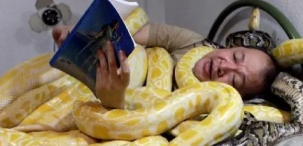 Il soggetto avrebbe così dichiarato che il rettile assomiglia tantissimo alla sua defunta moglie e quindi sarebbe la reincarnazione della sua amata, e che insieme condividono la quotidianità come se fossero una normale coppia, quindi mangiando insieme, stando insieme a letto, guardando la tv ed anche fuori casa, come andando in palestra o passeggiando nel parco pubblico.