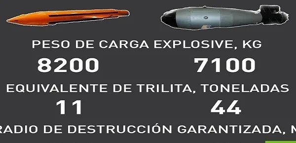 Secondo la scheda divulgata dal media russo la AVBPM avrebbe una potenza distruttiva paragonabile a quella sprigionata da 44 tonnellate di tritolo, mentre la super bomba americana si fermerebbe ad 11 tonnellate.