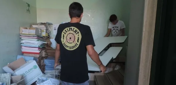 Sul posto a fare lo sgombero e il trasloco erano gli stessi studenti, molti dei quali minorenni. Assenti i docenti, assente il dirigente Giuliano Bocchia, assente un qualunque coordinatore dei ragazzi. Con loro presenti alcuni collaboratori scolastici, i vecchi ‘bidelli’, loro sì equipaggiati con scarpe antifortunistica, guanti e anche carrelli. E mentre gli studenti scaricavano le cattedre dal secondo piano della struttura con l’uso di mani e spalle, i collaboratori scendevano con carrelli e ascensore.
