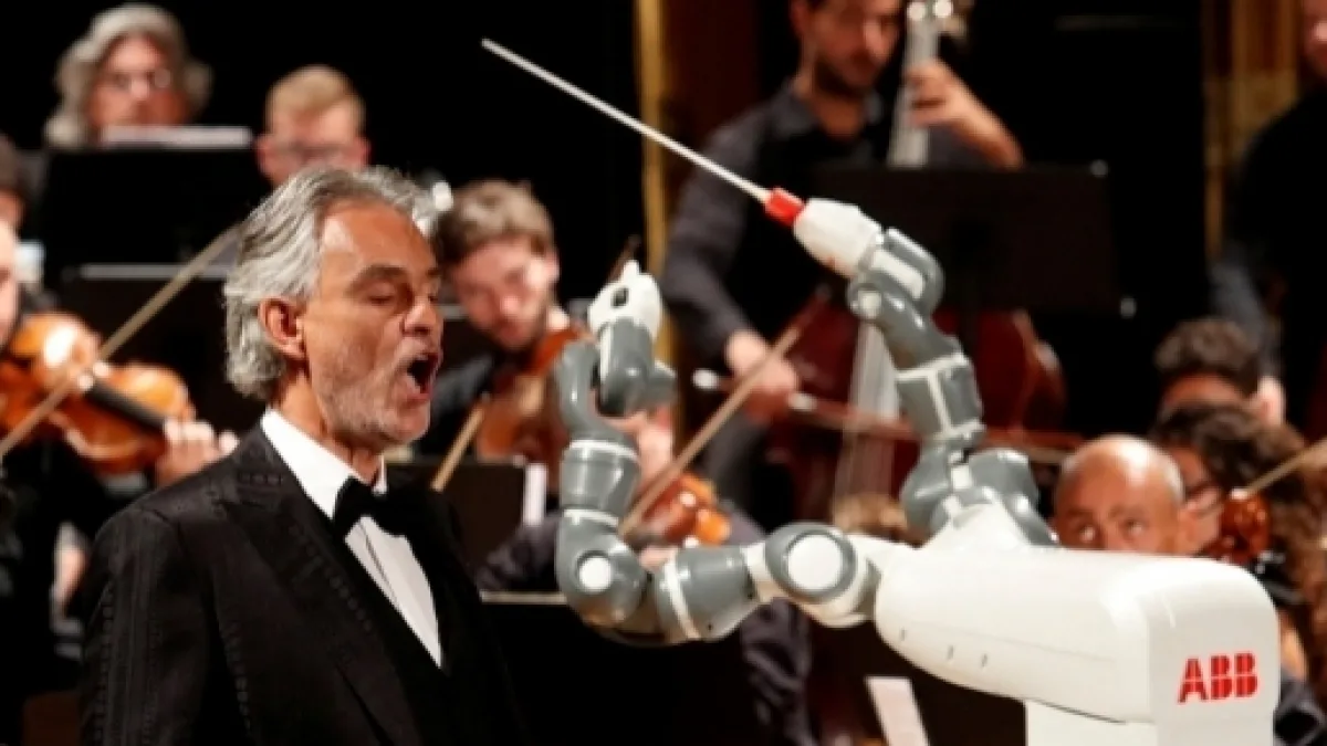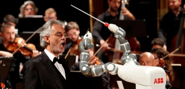 L'Italia, paese ricco di antiche tradizioni e cultura, ha fatto un passo avanti nella gara del ventunesimo secolo verso l'automazione, diventando il primo paese a mostrare un'orchestra diretta da robot. YuMi, un robot a doppio arco progettato dall'azienda ABB Ltd, ha accompagnato il tenore italiano Andrea bocelli conducendo l'Orchestra Filarmonica di Lucca in occasione di un evento di gala nel Teatro Verdi di Pisa tenutosi martedì sera.