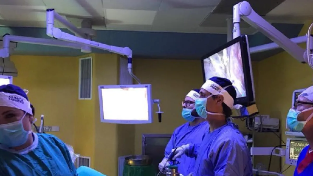Il dottor Perone, presso l'unità di endoscopia ginecologica avanzata della clinica Sanatrix, ha proceduto con una delicata operazione. L'intervento unico al mondo è stato eseguito in laparoscopia con tecnologia 3D: è la prima volta che viene effettuata un'operazione di questo tipo. Un'ulteriore difficoltà era legata ad una peritonite in fase iniziale che aveva interessato anche le tube di Falloppio. Per consentire alla donna di portare avanti la gravidanza, è stato necessario asportarle un'ovaia e una tuba.