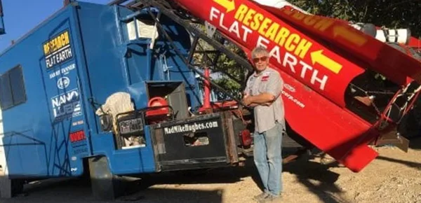 Hughes è convinto che una cospirazione a livello globale, in cui sarebbero coinvolti i governi e anche le agenzie spaziali mondiali, vuole nascondere la verità sulla forma del nostro pianeta, da qui l’idea di costruire un razzo fatto in casa, salire in orbita e tornare con le prove che la Terra è piatta.