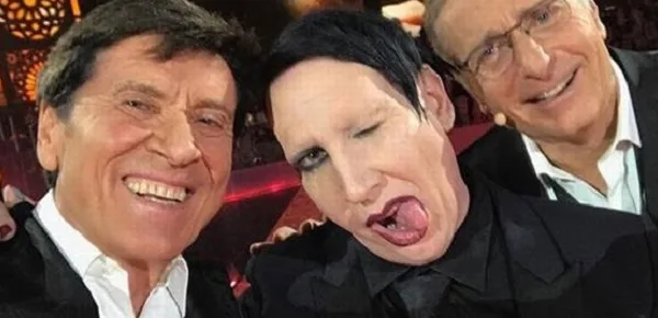Gianni Morandi è senz'altro un grande artista italiano, un vero cantante lui, e molta gente mai se lo sarebbe immaginato accanto a Marylin Manson per farsi un selfie. "Da molti definito provocatore, anticristo e diavolo in persona ma io l'ho trovato tranquillo e sereno" dice Morandi. Ma non è solo questo che ha fatto sbarrare gli occhi a tanta gente, ma anche un gesto del cantante durante l'esibizione decisamente non convenzionale: uno sputo. Manson mentre cantava, a un certo punto, allontana il microfono e sputa per terra mentre la telecamera lo stava inquadrando in primo piano.