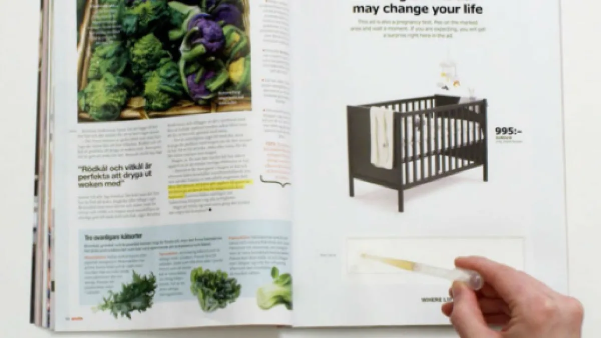 Geniale e rara allo stesso tempo, certo è che moltissime donne saranno probabilmente affascinate dall'idea di ricevere il buono sconto o di sapere di essere rimaste incinte, fatto sta che la frase "Urinare su questo annuncio potrebbe cambiarti la vita" è decisamente incisiva e attirerà l'attenzione di moltissime donne. Mercene Labs ha collaborato con la società pubblicitaria di Ikea per la realizzazione dell'annuncio dopo svariate prove effettuate per verificare la veridicità della positività o negatività del test di gravidanza cartaceo.