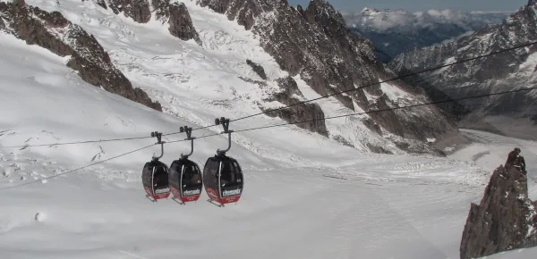 Nessun incidente alle persone quindi, solamente un grande spavento. La cabinovia è lunga oltre 5 km e collega la base dell'Aguille du Midi a Punta Helbronner, dove sorge uno spettacolare rifugio futuristico a oltre 3.800 metri di quota, meta rinomata tra escursionisti e turisti che vogliono vedere da vicino le vette imponenti della catena alpina. Si possono vedere infatti il Cervino, il Monte Rosa, il Gran Paradiso e tutti gli altri colossi delle Alpi Occidentali.