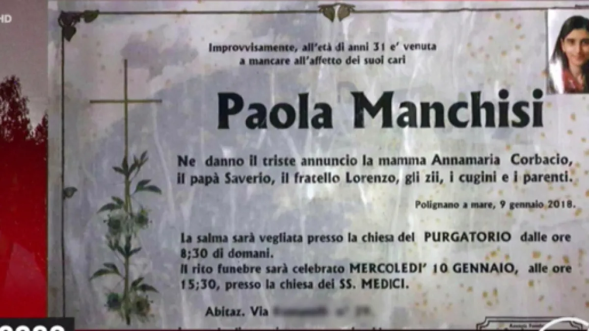 Questa storia si svolge a Polignano a Mare, un luogo conosciuto per aver dato i natali a Domenico Modugno e per aver ospitato la registrazione di molti film e soap opera internazionali, tra cui la famosissima Beautiful. Questa è la descrizione della cittadina che viene fatta da Federica Sciarelli, nella puntata di Chi l'Ha Visto? di oggi, 10 gennaio 2018, perché è importante capire che la vicenda di Paola Manchisi non è avvenuta in un paesino isolato ma in una città vivace e conosciuta in tutto il mondo.