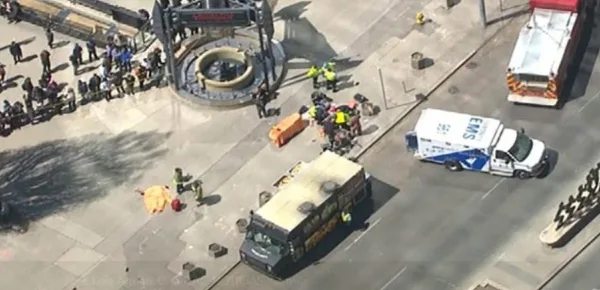 La corsa si sarebbe protratta per diverse decine di centinaia di metri, prima che il pesante mezzo potesse arrestare la sua corsa contro la parete muraria di un edificio. L'autoveicolo, a quanto si apprende, avrebbe colpito una trentina di persone, come un testimone ha riferito alla polizia. Le autorità locali hanno invitato tutti i cittadini a restare lontani dalla zona del (possibile) attentato terroristico. Ferma anche la linea della metropolitana che attraversa il quartiere cittadino coinvolto. La tragedia è avvenuta verso le ore 13.30 (ora canadese): in Italia erano circa le 19.30.