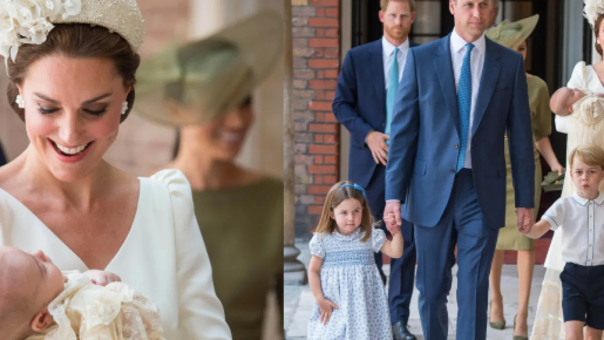 I paparazzi riprendono il piccolo, addormentato e fra le braccia della mamma; Louis indossa la Honiton lace Christening, proprio come suo fratello e sua sorella prima di lui. Il vestitino è una replica di un abito in pizzo e raso color crema che fu realizzato per la figlia della regina Vittoria e del principe Alberto nel 1841. L'abito originale è stato indossato per tutti i battesimi reali inglesi fino a quello di Lady Louise Windsor nel 2004. Da quell'anno in poi i membri della famiglia reale hanno iniziato ad indossare la riproduzione dell'abito che fu disegnato dalla costumista della regina, Angela Kelly, e presenta gli stessi elementi dell'originale, come il colletto, il fiocco e la gonna lunga.