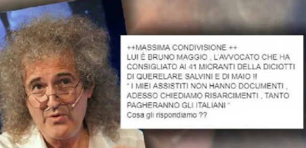 Cresce di settimana in settimana la condivisione di post ironici, creati da pagina col proposito di ridere e far divertire, da parte di persone che però non capiscono lo scherzo e, indignate, commentano insultando il povero disgraziato di turno che gli capita a tiro sulla tastiera. Questo è il caso del recente post dedicato a Bruno Maggio, che viene descritto nella didascalia come l'avvocato che difende i migranti, ma che in realtà è semplicemente il chitarrista dei Queen, Brian May.