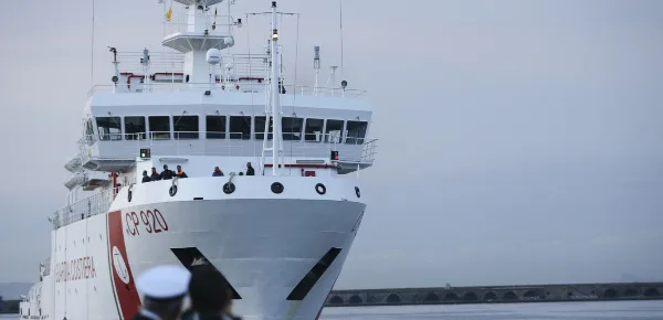 La motovedetta della Guardia Costiera italiana Gregoretti si trova ora nella rada del porto di Catania, in attesa che il Viminale autorizzi l'attracco, per consentire ai 135 migranti raccolti nei giorni scorsi nel Mediterraneo di mettere piede a terra in Italia. In cinquanta sono stati prelevati da un gommone in avaria, dopo che il peschereccio Accursio aveva lanciato l'allarme, senza però far salire a bordo i migranti, ma attendendo l'arrivo dei soccorsi accanto al gommone.