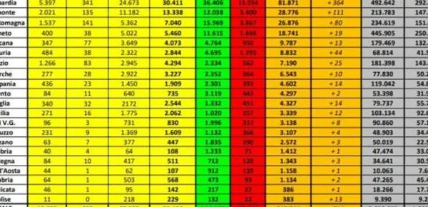 A seguire il bollettino odierno con i dati aggiornati regione per regione: