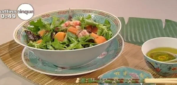 ricette di Samya a Mattino Cinque. Ai fornelli è stato preparato un piatto fresco e leggero per la bella stagione. Innanzitutto bisogna procurarsi 250 gr. di gamberi rossi, una papaia, mezzo cipollotto, 2 cucchiai di salsa dolce di pesce, una confezione di insalata mista e foglie di menta q.b. Iniziate mettendo dell'acqua a bollire sul fuoco, dopodiché mettete i gamberi a lessare per un paio di minuti. Quando il loro colore sarà rosato, potete scolarli. Nel frattempo, prendete la papaia e sbucciatela, poi privatela dei semi e tagliatela a cubetti. A questo punto bisogna prendere il cipollotto e tagliarlo a fettine sottili, dopodiché è necessario metterlo a bagno in acqua fredda così da eliminare quel sapore deciso che ha. Fatto questo prendete un'insalatiera e metteteci dentro la vostra insalata mista, i gamberi sgusciati, la papaia, il cipollotto scolato e asciugato, la salsa dolce di pesce ed un filo d'olio evo. Per ultimo, dopo aver mescolato la vostra