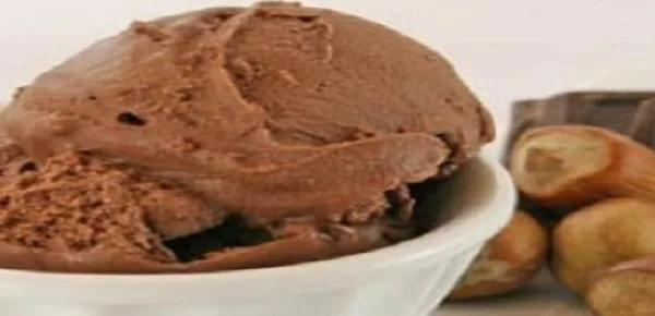 Ingredienti per quattro persone: 60 grammi di nocciole, 4 cucchiai di zucchero a velo, 120 grammi di cioccolato fondente, 6 dl di latte, ½ dl di panna fresca, 4 tuorli grandi, 150 grammi di zucchero.