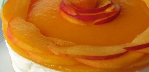 In un pentolino versare lo sciroppo di pesche, la colla di pesce ormai morbida e mettere tutto su fuoco lento per circa cinque minuti. In una ciotola capiente mettere lo yogurt alla pesca, lo yogurt greco e i panetti di formaggio fresco, con le fruste elettriche lavorare il tutto fino ad ottenere un composto liscio, omogeneo e senza grumi.