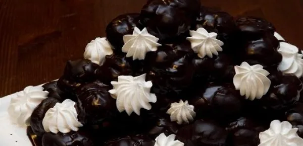 Poi, prendete un bignè alla volta e farcitelo con la crema pasticcera utilizzando una siringa per dolci. Una volta terminata questa operazione immergeteli nella glassa a cioccolato, che potrete ottenere sciogliendo del cioccolato fondente con un po' di latte. Poi disponeteli a piramide su un vassoio e decorate con la panna montata. Mettete in frigo fino al momento di servire.