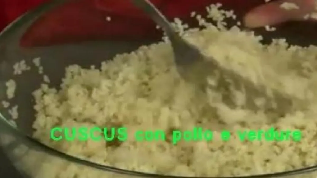 Ingredienti e quantità: la ricetta è per quattro persone, la quantità di cuscusè 200 grammi, 500 grammi di petto di pollo, del brodo vegetale, melanzana,due peperoni, due zucchine, otto pomodorini, due cipollotti, un ciuffo dibasilico, un ciuffo di prezzemolo, limone, olio extra vergine di oliva, sale epeperoncino.