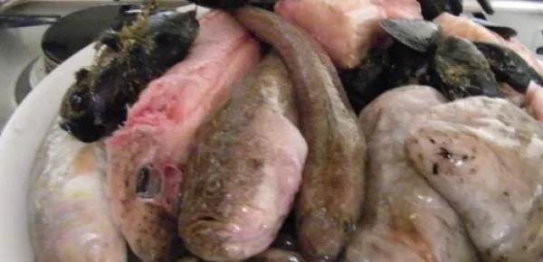 Squamate le triglie, evisceratele e pulitele sotto l'acqua. Sfilettatele in questo modo: tagliate la testa e le pinne (che terrete da parte per il fumetto), aprite completamente le triglie con un coltello affilato. Infilate la punta del coltello sotto la lisca centrale e cercate di staccarla dalla carne. Non preoccupatevi se un po' di polpa rimane attaccata perché con le lische farete il brodo. Mettete le teste, le lische e le code in un pentolino con mezzo litro d'acqua circa, aggiungete una costola di sedano, una fettina di cipolla e una piccola carota e poco sale.