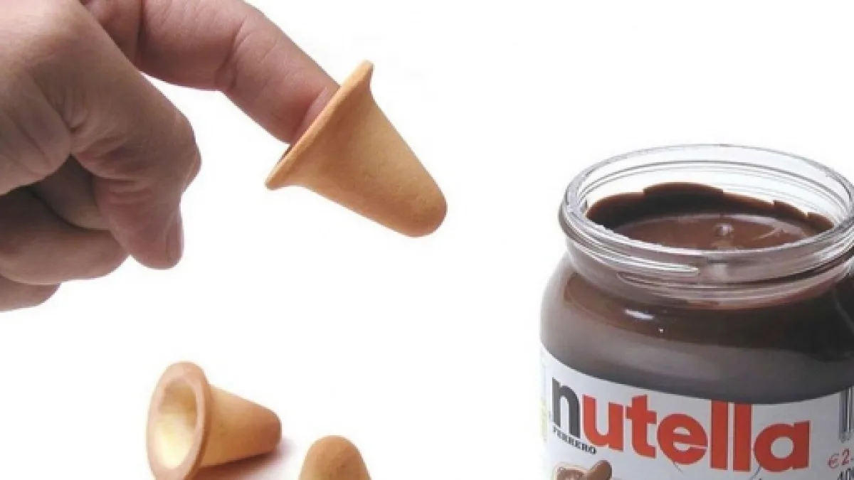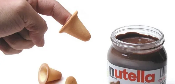 Un designer toscano, però, ha deciso di progettare un particolare biscotto che permetta di immergere le proprie dita nella Nutella senza sporcarsele, nonché prolungare il piacere di quel momento sgranocchiando la punta del proprio dito dopo aver assaporato la gustosa cioccolata di casa Ferrero. Si tratta di un particolare biscotto dalla forma di ditale che può essere indossato sull'indice prima di immergerlo peccaminosamente nel barattolo più buono del mondo.