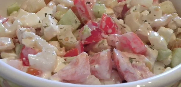 A questo punto spegnete la fiamma, fate intiepidire il tutto e unite il pollo cremoso al resto delle verdure. Salate e pepate a vostro gradimento e, successivamente, amalgamate con un cucchiaio di legno e trasferite il tutto in frigorifero per circa un paio d'ore prima di consumare la vostra insalata di pollo cremosa. Buon appetito.