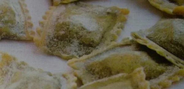 - Stendete un pezzo di pasta in una sfoglia e sottile, larga 8 cm circa. Ordinate sulla striscia di pasta tanti mucchietti di ripieno equidistanti (tutti alla stessa distanza) fra loro. Ripiegate l’altro lembo di pasta e ritagliate i ravioli con la rotella dentata. Man mano che li preparate trasferiteli su una tovaglietta infarinata.