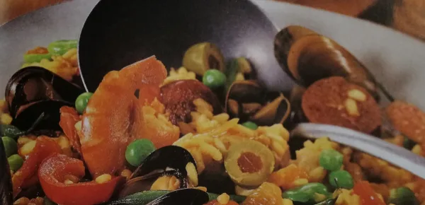 La paella alla valenciana è un piatto unico della cucina spagnola caratterizzato da una perfetta armonia di sapori. Viene preparato, infatti, con tantissimi ingredienti che spaziano dal pesce alla carne fino alla verdura. Si accompagna perfettamente con vini bianchi secchi di medio corpo come il Moscatel de Valencia o il Bianco d'Alcamo di Sicilia.