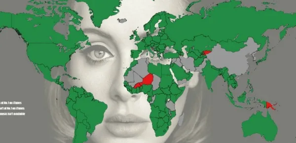 per riprodurre e organizzare file multimediali) come si evince dalla mappa dell'immagine dell'articolo: in questa mappa, le nazioni col colore verde sono quelle in cui l'album della cantante inglese è in testa alla classifica di iTunes, mentre i paesi colorati in grigio, quelli dove lo store di Cupertino non è disponibile.