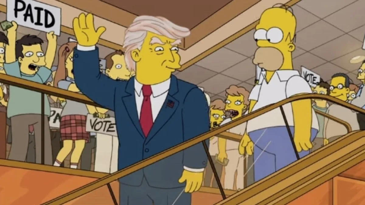 L'episodio in questione, andato in onda per la prima volta il 19 marzo 2000, fa parte dell'undicesima stagione ed è intitolato 'Bart al Futuro': in tale puntata la famiglia Simpson si ferma in un casinò indiano e il primogenito di Homer e Marge si imbatte in uno dei proprietari che gli mostra il futuro attraverso una specie di braciere. In questo futuro ambientato nel 2030 Bart è al lastrico e vive con il sogno di sfondare nella musica insieme al suo coinquilino Ralph Winchester; le cose vanno decisamente meglio alla sorella Lisa che addirittura risiede alla Casa Bianca in qualità di primo presidente donna degli Stati Uniti e proprio in una delle tante riunioni in cui risulta impegnata con i suoi consiglieri si lascia sfuggire una frase inequivocabile: 'Come sapete ereditiamo una riduzione del budget dal presidente Trump'.