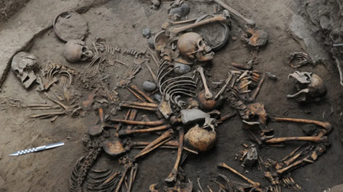 I resti sembrerebbero essere quelli di giovani adulti maschi e femmine, più un adulto maturo, un bambino ed un infante di un mese, tutti rinvenuti disposti sui fianchi e con le braccia incrociate per formare un grande cerchio.