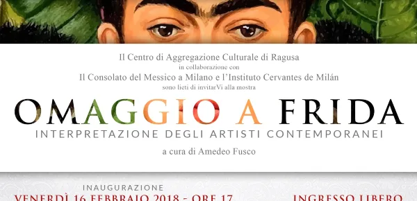 Dal 16 Febbraio fino al 14 marzo 2018 presso l’Instituto Cervantes di Milano, si terrà la Mostra d'arte internazionale “Omaggio a Frida. Interpretazione degli artisti contemporanei”, organizzata dal Centro di Aggregazione Culturale di Ragusa in collaborazione con l’Instituto Cervantes di Milano e il Consolato del Messico a Milano.