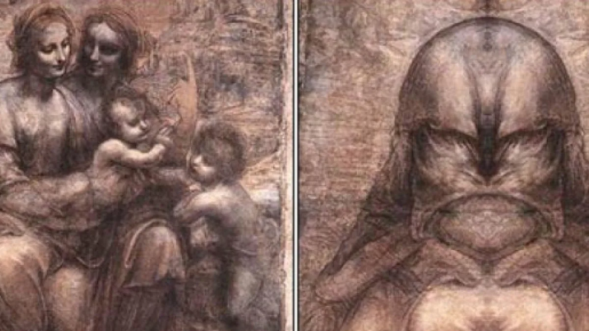Utilizzando questa tecnica sul celeberrimo quadro "Monna Lisa" possiamo notare come compaia misteriosamente una figura dotata di uno strano casco, la quale compare nuovamente in un altro famoso dipinto dello stesso Leonardo "Sant'Anna, la Vergine e il Bambino".