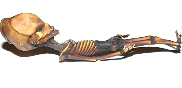 Il piccolo scheletro è alto 6 pollici (come si vede dalle foto poco più di una mano, circa 15 cm), ma le ossa sono compatibili con lo sviluppo di un bambino di 6/8 anni. Il cranio molto stretto e allungato è certo la parte più impressionante e misteriosa insieme al fatto che le costole sono 10 paia e non 12. Da qui nascono le domande sulla sua natura: è del tutto umano? Oppure ci sono tratti animali o alieni? Ora, la ricerca risponde così: grazie ad un campione prelevato dal midollo osseo delle costole, si è potuto ricostruire la sequenza intera del genoma.