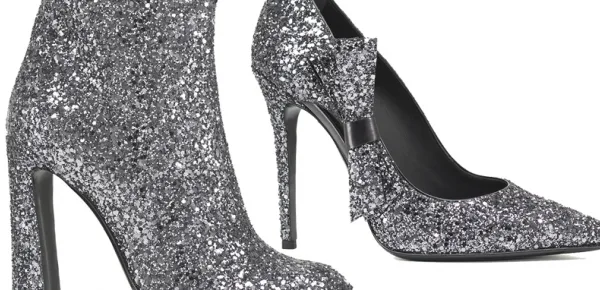 Infine, per muovere i primi passi nel nuovo anno, scegli i mille luccichii delle scarpe glitter: il mix perfetto sarà quello di abbinarle ad una abito nero con un leggerissimo tocco di gioielli in oro.